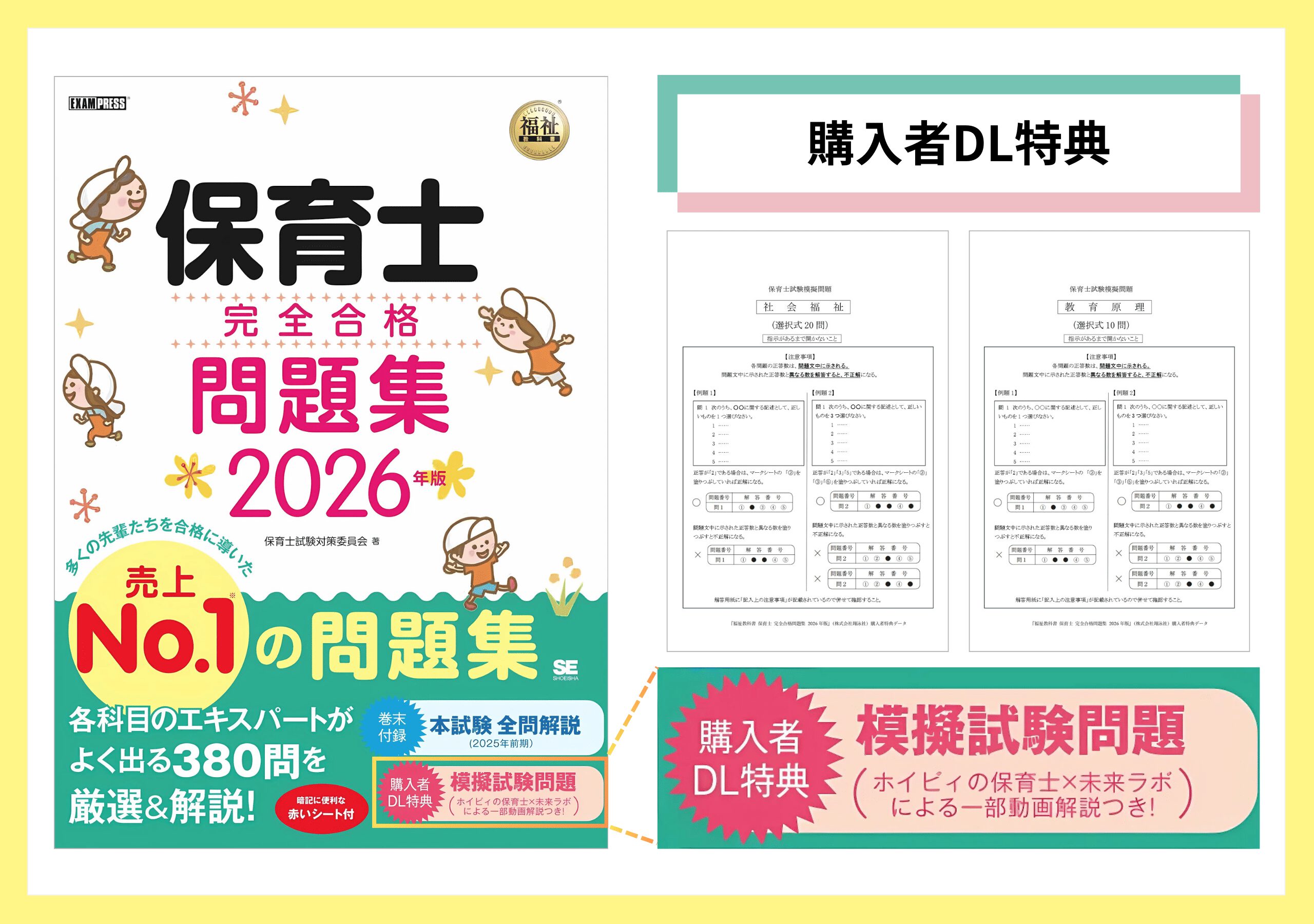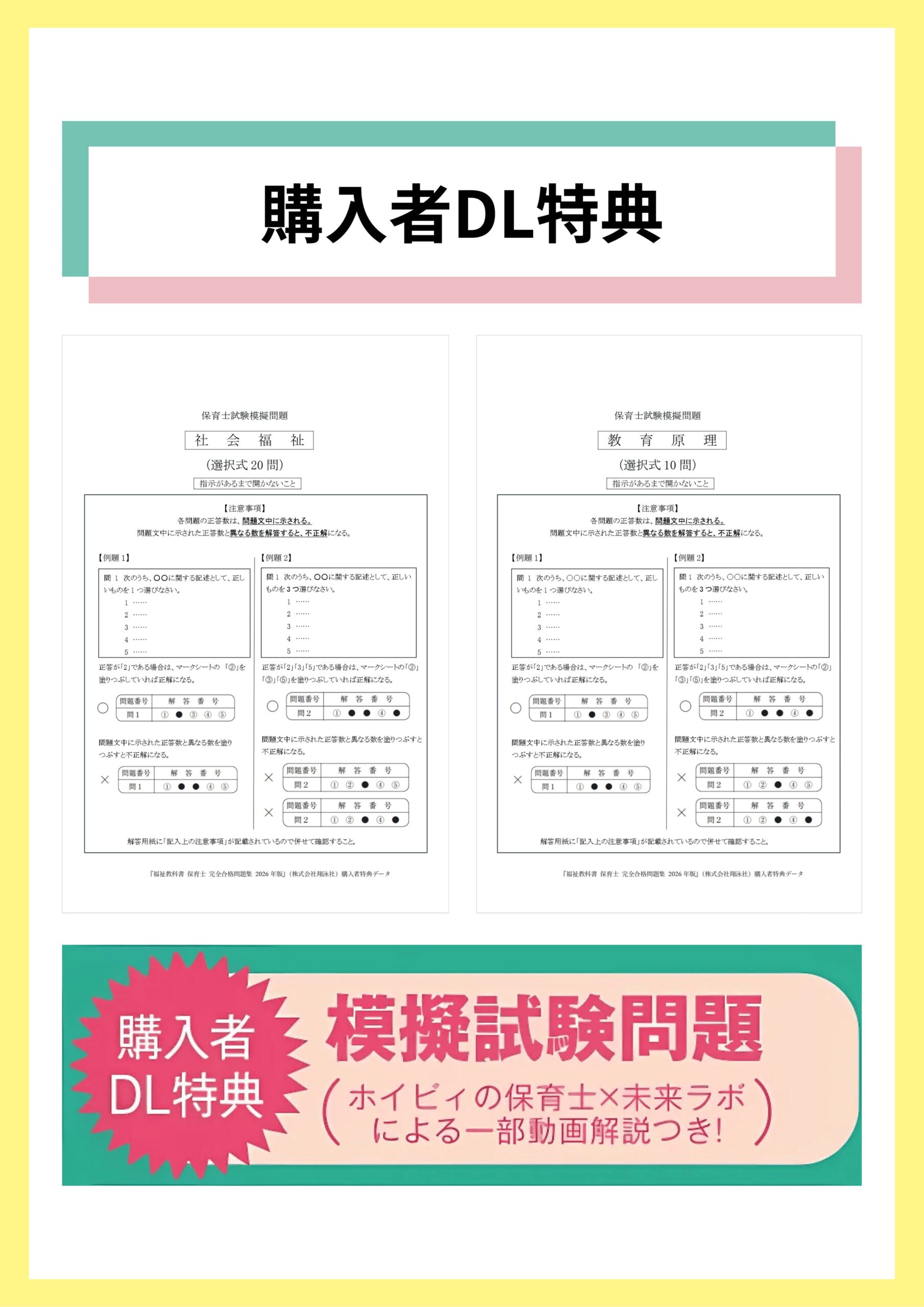 全国の書店で販売されている、保育士試験対策売上No.1問題集『福祉教科書保育士完全合格問題集 2026年版』の購入者DL特典である模擬試験問題の作成&一部解説動画を当チャンネルが担当させていただきました!