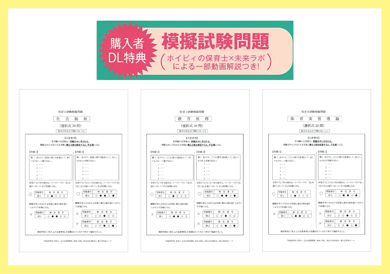 「福祉教科書 保育士 完全合格問題集 2026年版」の購入者特典として模擬試験を作成しました。